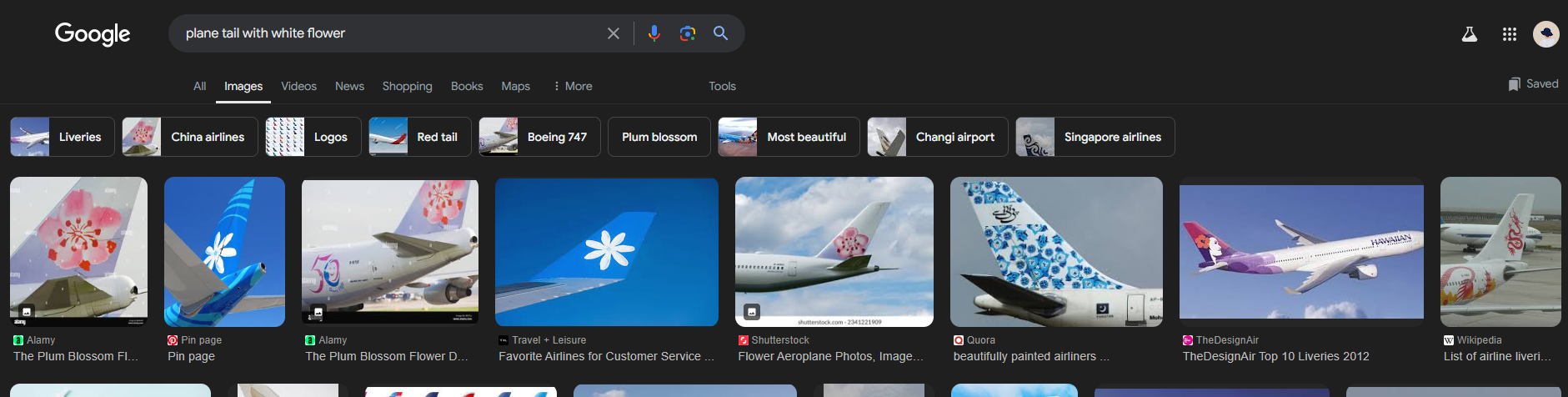 3) Go to Google, search for plane tail with white flower.