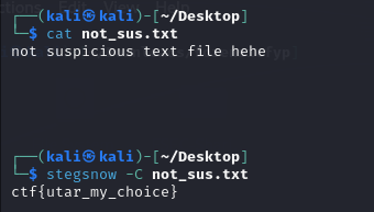 Provided a suspicious text file, we can see that it is quite normal, but there are extra lines in the text file. So, we utilize stegsnow to decode the message.