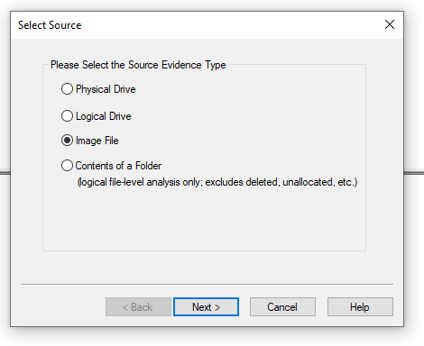 After that, select an appropriate source. Usually for CTF, it will be image file.