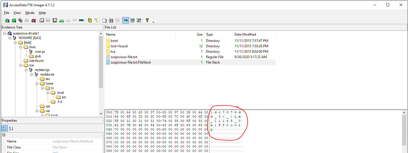 In this example, the suspicious file that will give the flag is suspicious-file.txt.FileSlack. It shows }61d907ec_3<_|Lm_111t5_3b{FTCocip but if you reverse it, it shows the true flag which is picoCTF{b3_5t111_mL|_<3_ce709d16}.