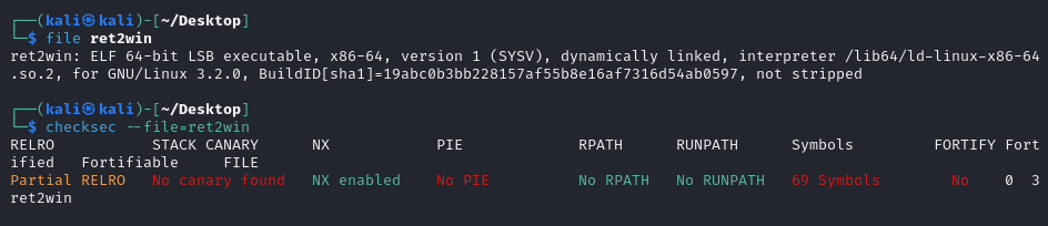 When we use checksec on a binary, it will show a bunch of security features. In this section, we will be introducing those security measures. Usage as shown below: