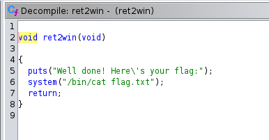 After downloading the file, load it up to Ghidra. We can see this code here that prints out the shell, so we want to enter this function.