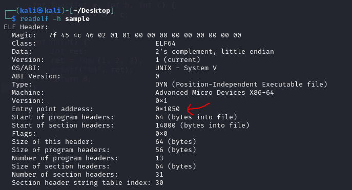 readelf -h <filename>, which is often used to find the program’s entry point.