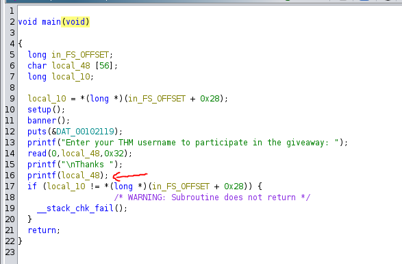 We can clearly see the format string vulnerability here.