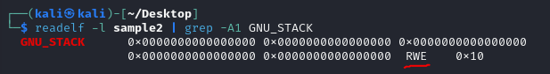 In Linux, NX is enabled by default. When NX is disabled, the GNU_STACK segment has read, write and execute (RWE) permissions. However, with NX enabled, this segment is restricted to only read and write (RW) permissions, making it non-executable and thus more secure against certain types of code injection attacks.